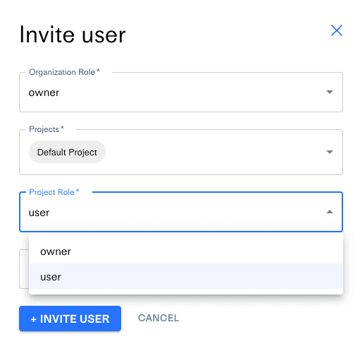 If you are a project or organization owner, you can also add users to organizations and projects with a few easy steps: