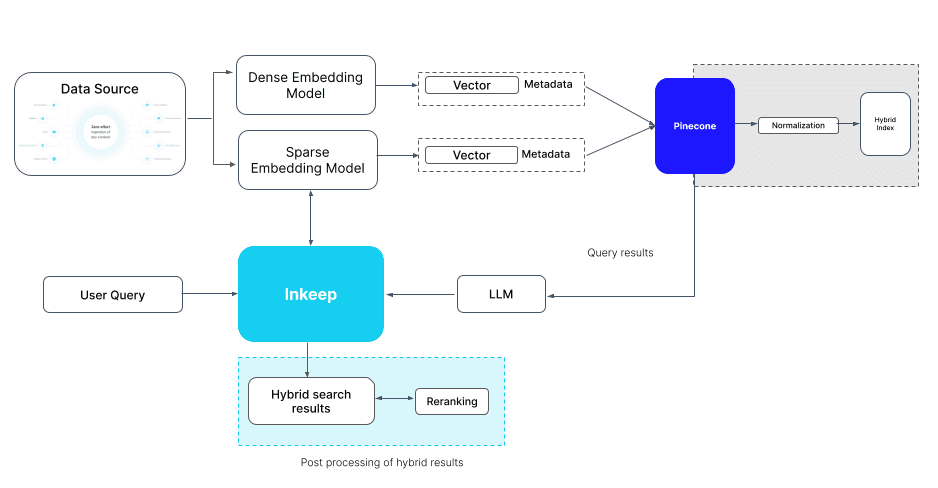 We use Pinecone for vector storage and retrieval which has proved crucial for providing flexibility across different customer needs. For example, we create dedicated instances for enterprise customers using Pinecone's pod architecture to ensure low latency for our search service. However, for chat applications where latency is less critical, we use Pinecone's serverless option, which is more cost-efficient. Pinecone also supports hybrid search, combining sparse and dense embeddings, to deliver a more robust and accurate search experience. This flexibility allows us to optimize costs and performance, whether dealing with enterprises with extensive documentation or smaller companies with fewer pages.