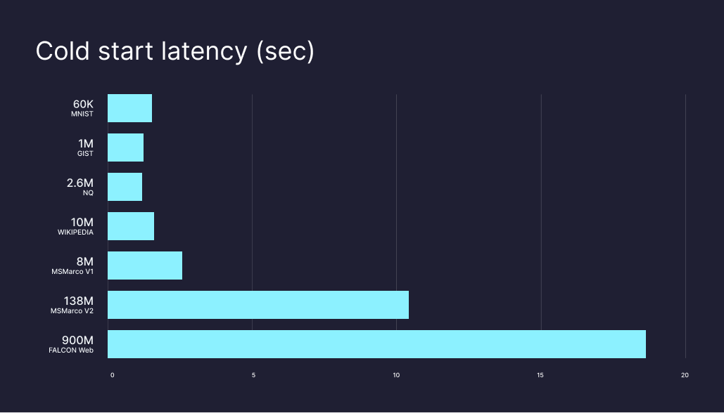 With the ability to incrementally (re) build indexes, we unlock another critical feature of serverless: you only need to load segments that have been newly added and are relevant for a given query. This feature will allow RAG applications to continue to serve fresh results at scale as users add, edit, and redact documents.
