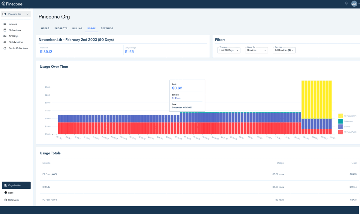 - Monitor usage over time: With better visibility, you stay in control of cost. Quickly visualize and track changes to predict usage for the future. Breakdown usage further with filters for timespan, projects, and services.