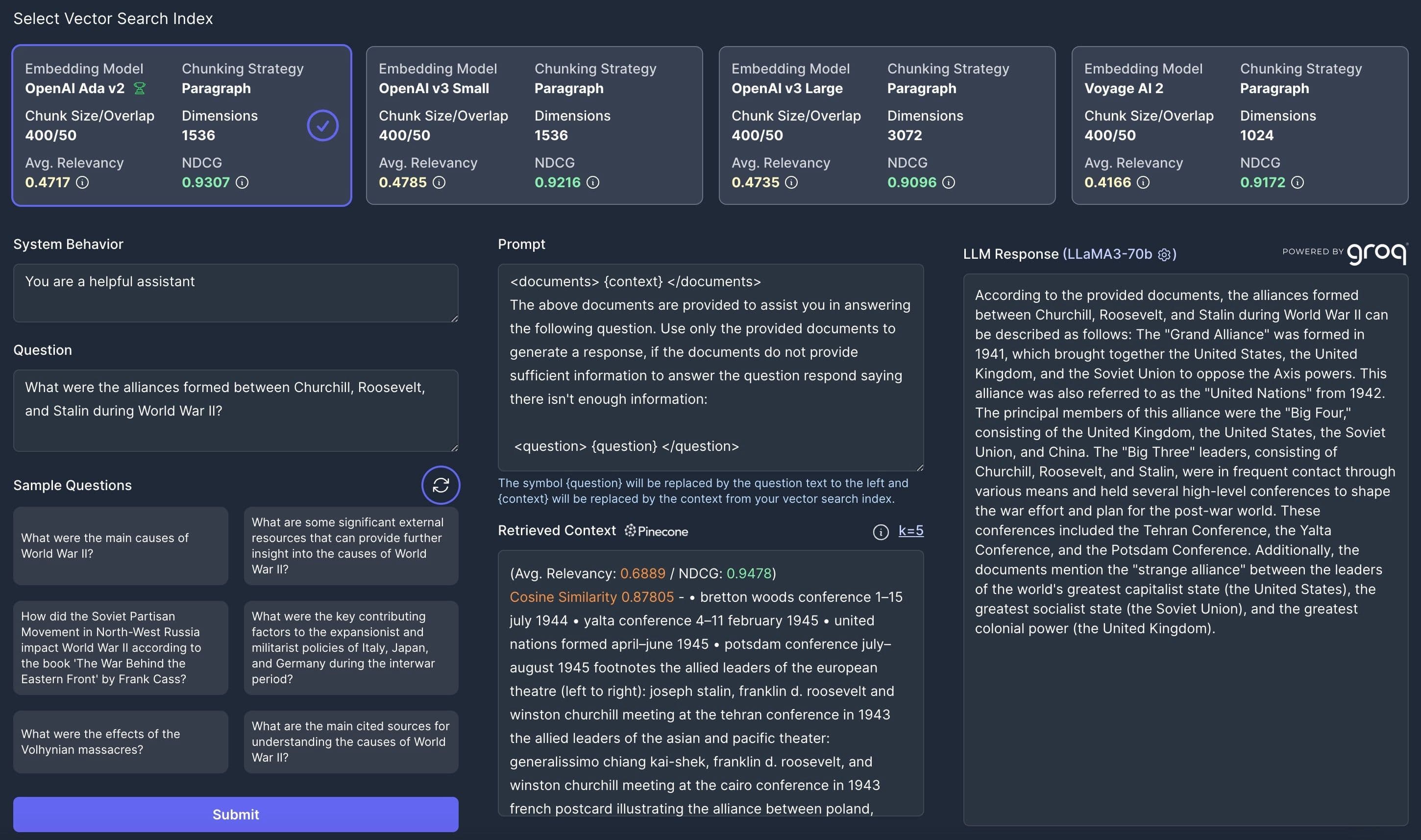 With the Vectorize RAG Sandbox, you can see what context gets returned from your vector search query and how your favorite LLM will generate a response based on that context.