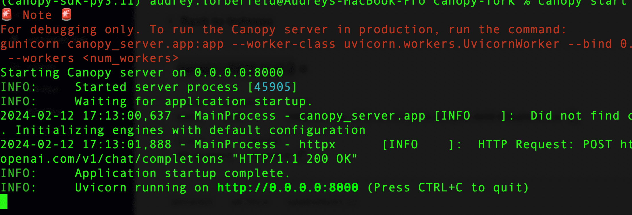 directory. You’ll see the Uvicorn server start on your local machine.