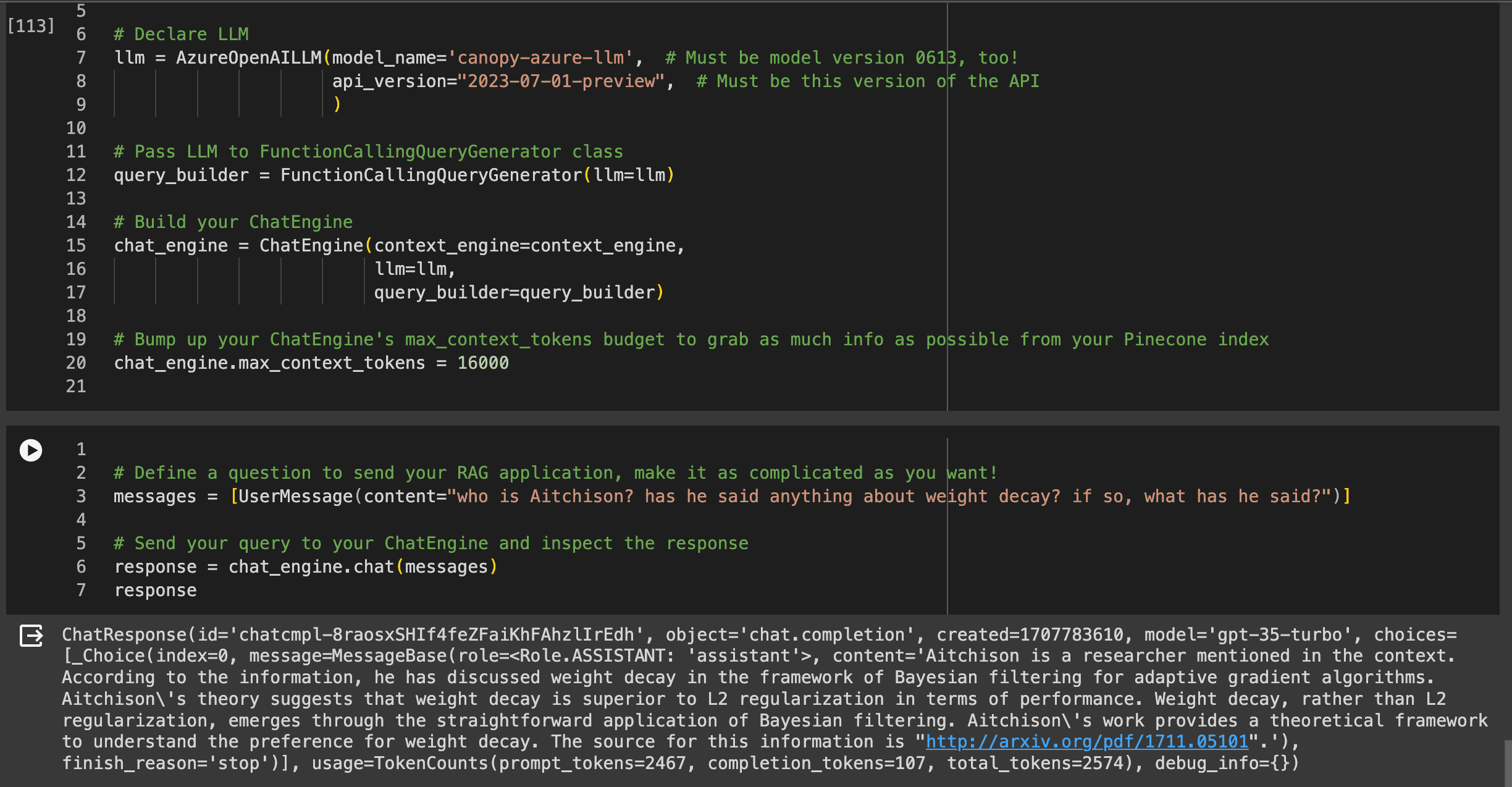 command, you can chat back and forth with the documents in your Canopy index. The ChatEngine