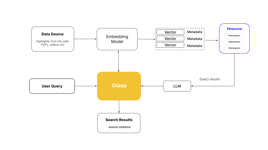 Glasp is a social web highlighter that enables users to highlight and organize quotes and ideas from the web, without the need to switch between screens, while also accessing the insights and learning of like-minded individuals. More than just a knowledge management tool, Glasp is a social hub that champions the democratization of learning. In a recent conversation with Kazuki Nakayashiki, CEO and co-founder at Glasp, we explored the pivotal role Pinecone plays in supporting Glasp’s mission to democratize access to learning and experiences with semantic search and retrieval of information.