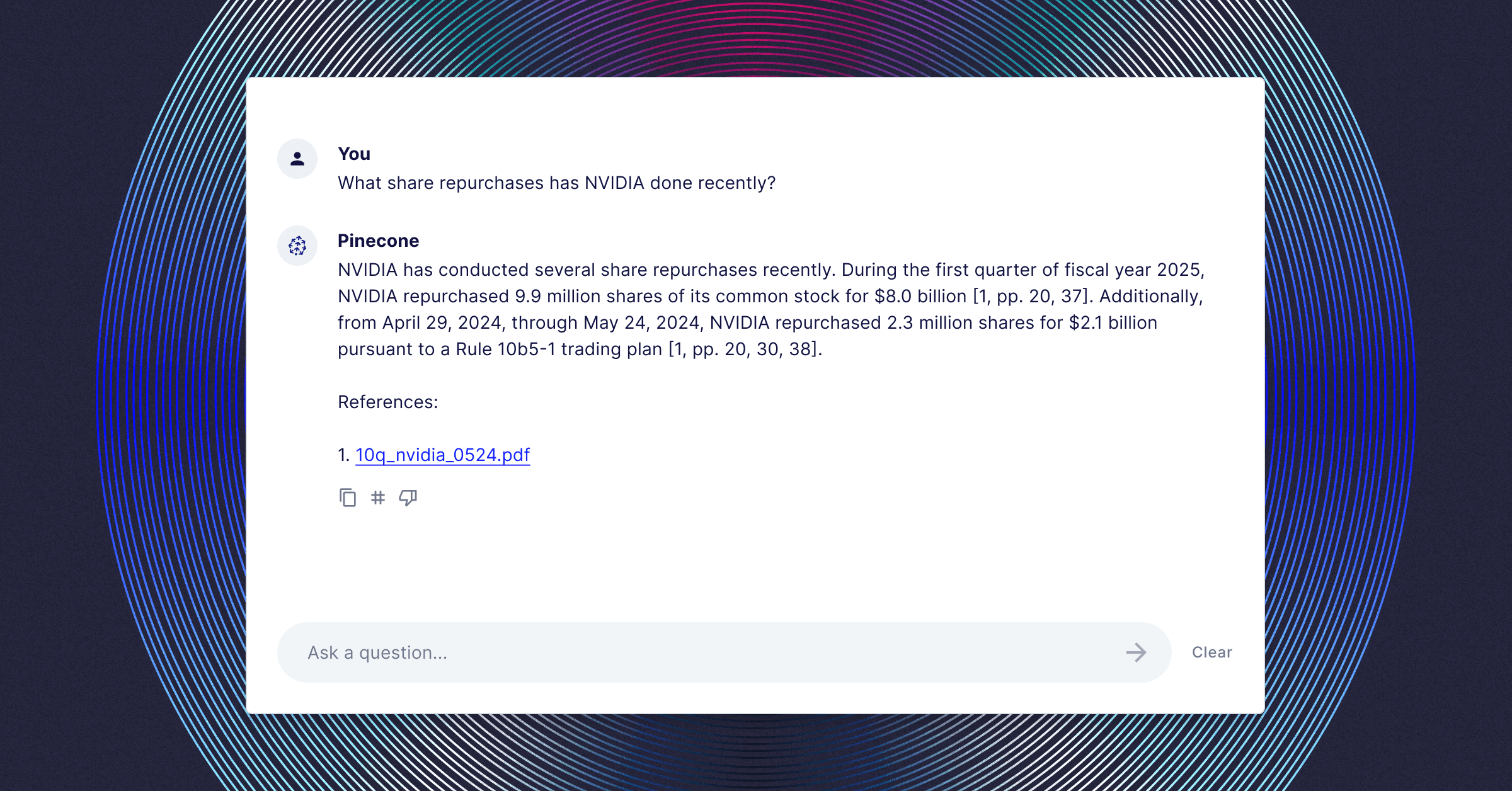 msg = Message(content="What share repurchases has NVIDIA done recently?")