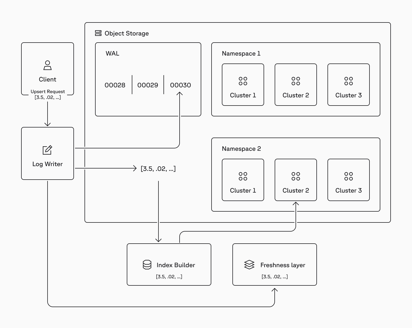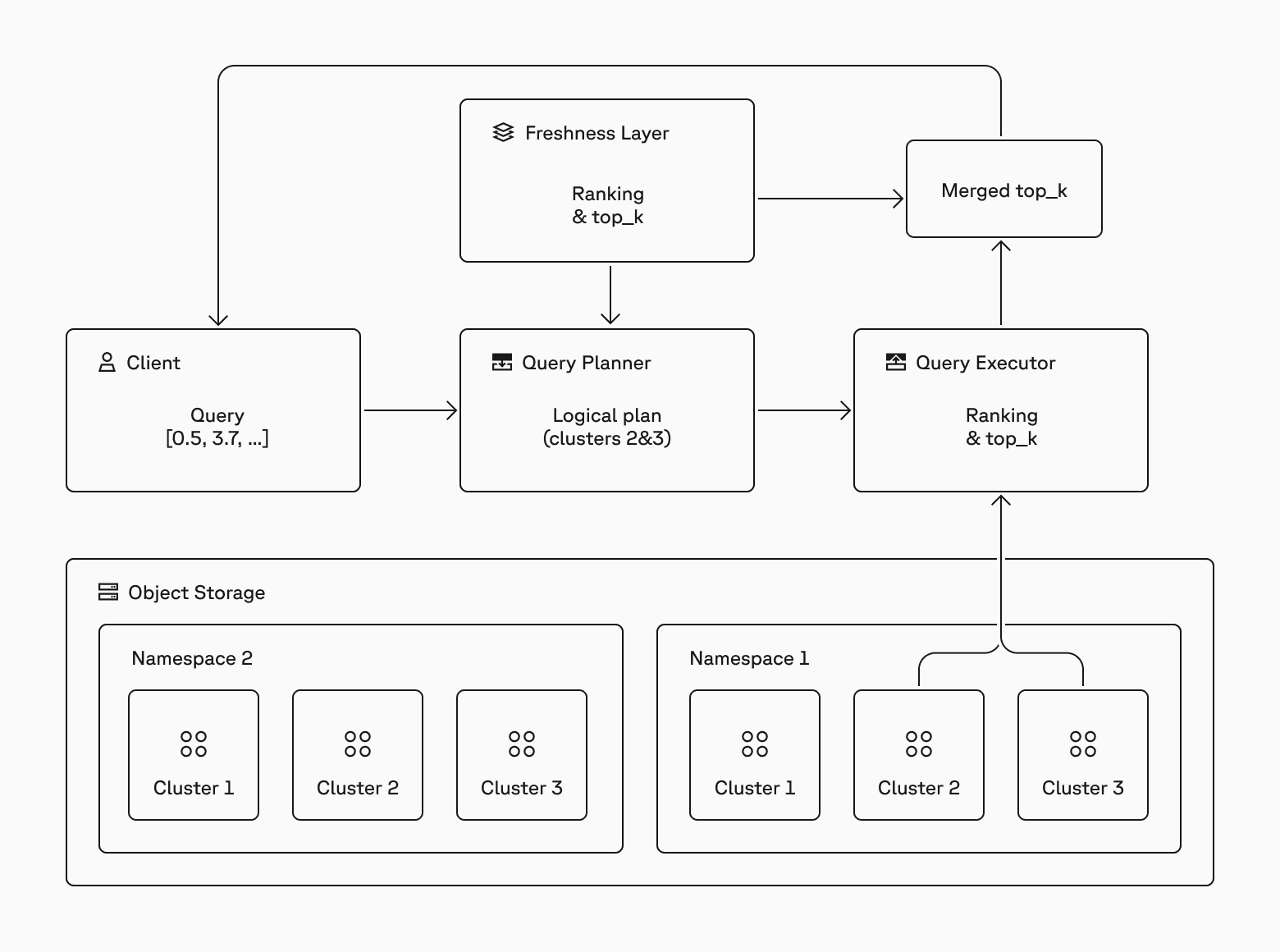 - Industry-first architecture with vector clustering on top of object storage provides low-latency, always-fresh vector search over a practically unlimited number of records at a low cost.