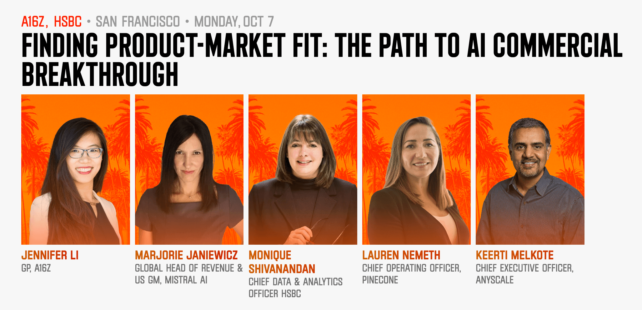 Join a16z and HSBC for an exclusive panel discussion "Finding Product-Market Fit: The Path to AI Commercial Breakthrough" featuring founders and C-suite executives from Mistral AI, Pinecone, HSBC and Anyscale. Jennifer Li, GP @a16z will moderate this insightful panel where we will cover strategies for achieving product-market fit and the challenges of commercializing AI technologies. Whether you're a startup founder, investor, or AI enthusiast, this discussion will provide practical takeaways for anyone looking to succeed in the AI space. Space is limited. Register now to secure your spot! This event is a part of #TechWeek - a week of events hosted by VCs and startups to bring together the tech ecosystem. https://www.tech-week.com/