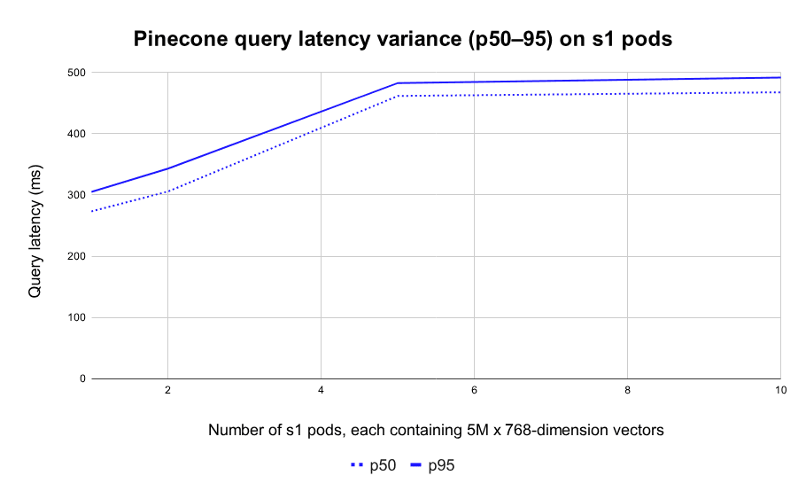 Next, you need to know that search speed will be consistent for your users without erratic spikes from one query to the next. This update drastically lowers the variance between p50 and p95 search latencies: It is now within 20% for p1 pods, and just 10% for s1 pods.
