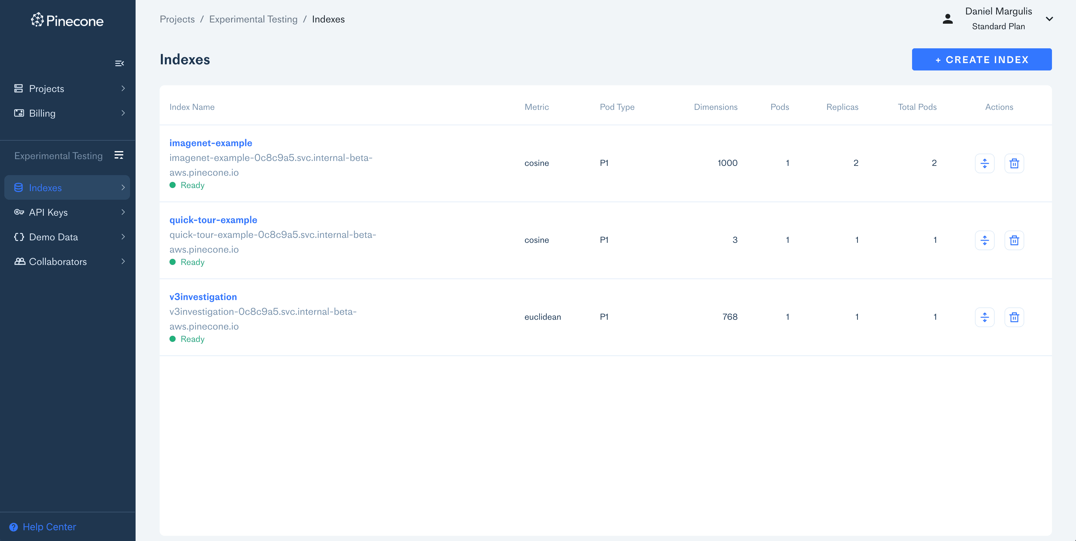 And now, creating and managing projects is even easier with the completely redesigned management console. It includes a new page for managing projects, along with a more powerful page for managing indexes and data.