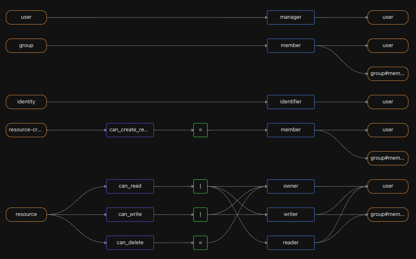 When creating a new project with Aserto, we can start with this initial model that can be useful in a variety of use cases. Naturally model can evolve as our application changes and grows over time.